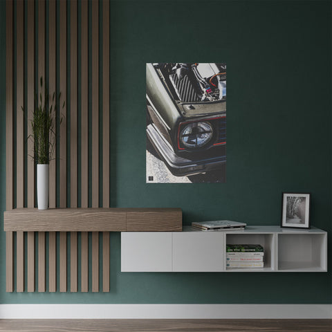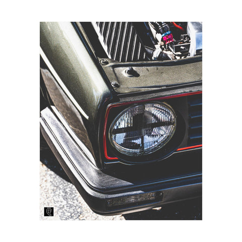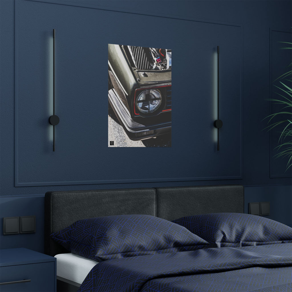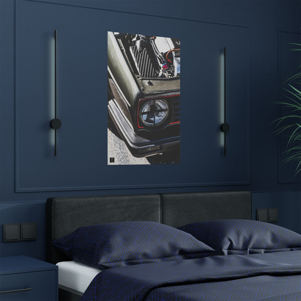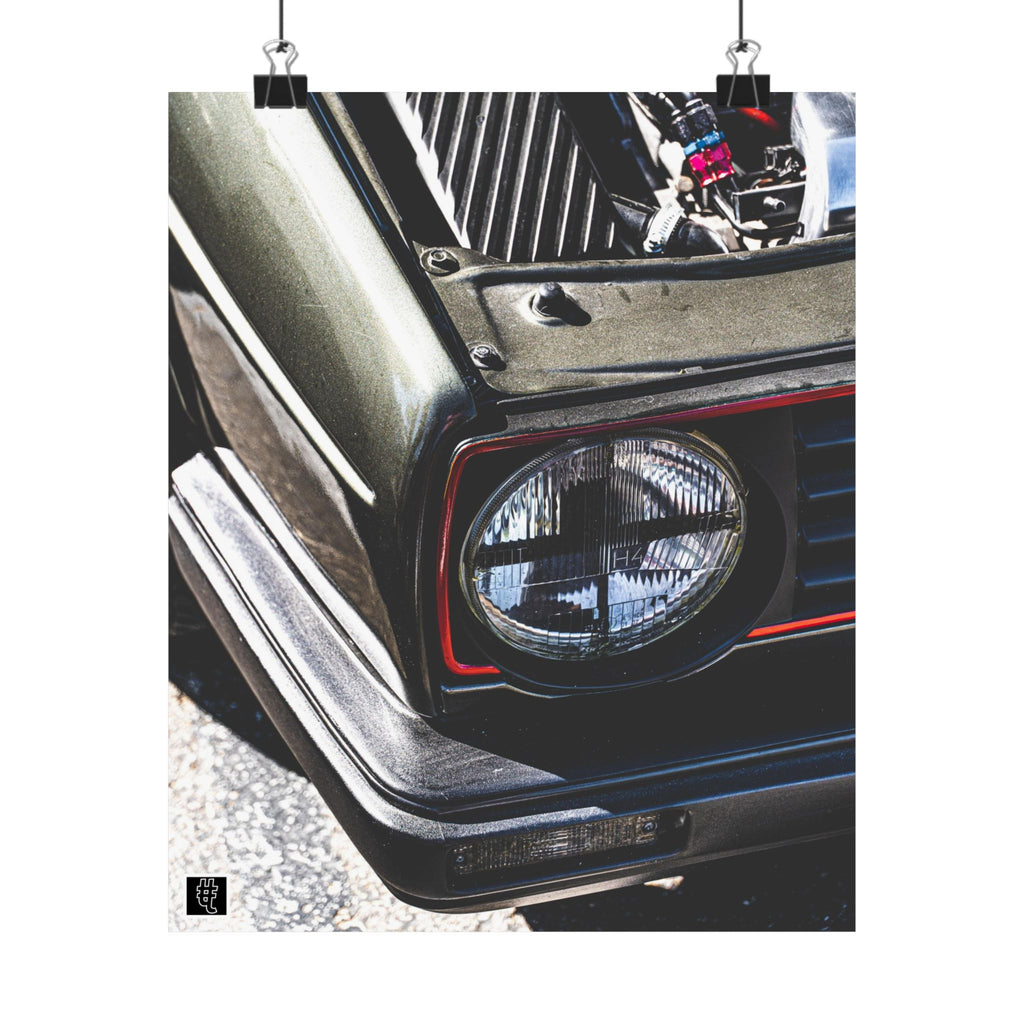 Featuring the iconic "crosshair" headlights found on early GTI models. True fans of the GTI MkII will notice the airbox is not original, as this GTI was engine swapped with the celebrated VR6. Each poster is made with 300gsm, resin-coated inkjet photo paper - it's hefty.